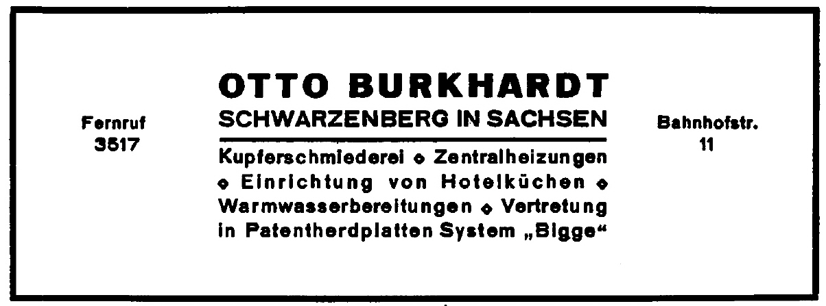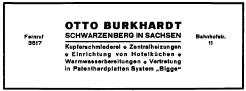 Inserat Kupferschmiede Otto Burkhardt, ehemals Bahnhofstraße 11 |