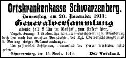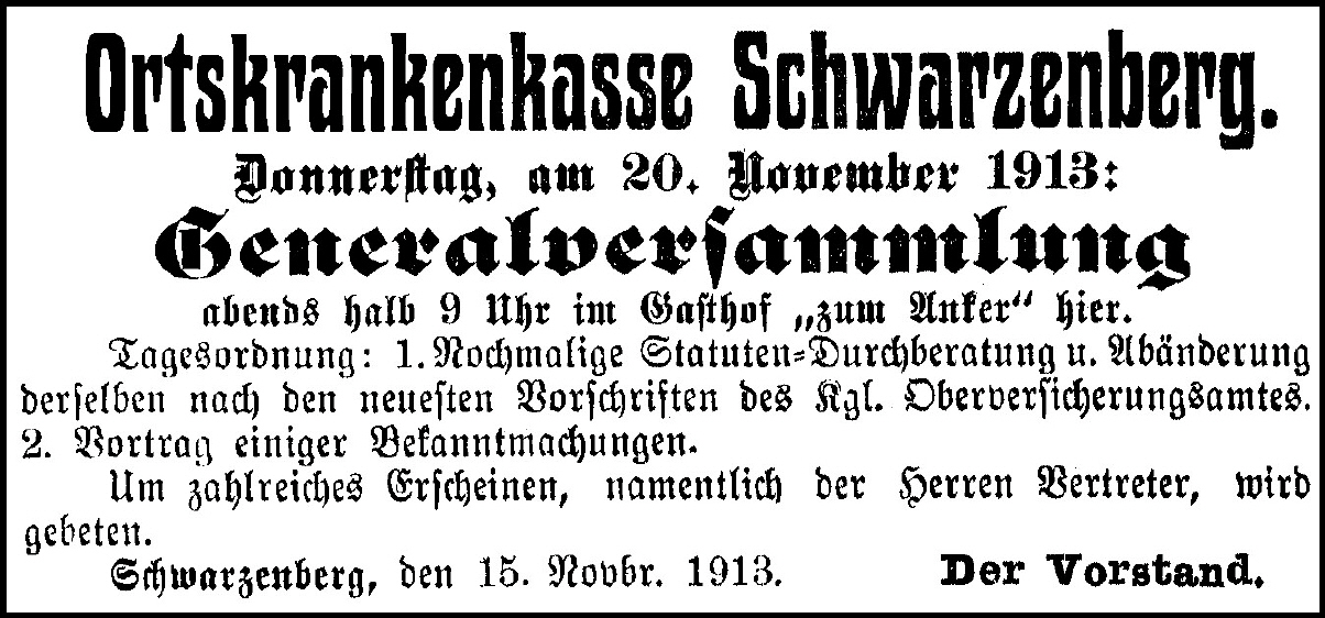 Inserat AOK Schwarzenberg vor 100 Jahren |
