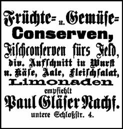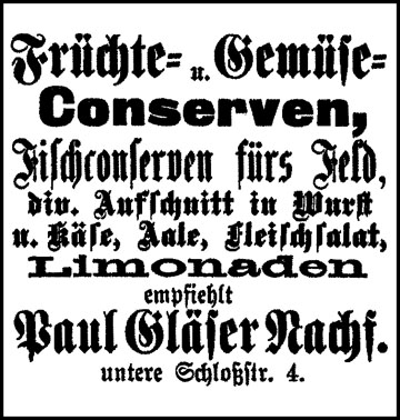 Das Geschäft von Paul Gläser befand sich in der Unteren Schloßstraße neben dem Schuhmacher Börner. |