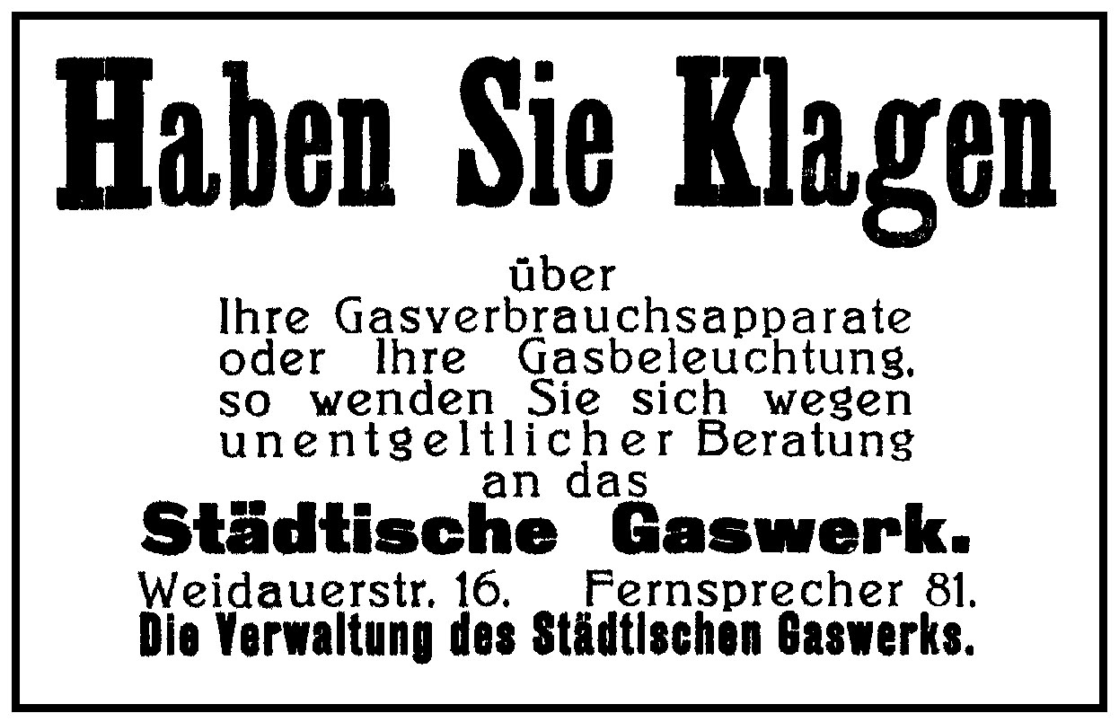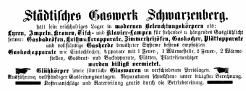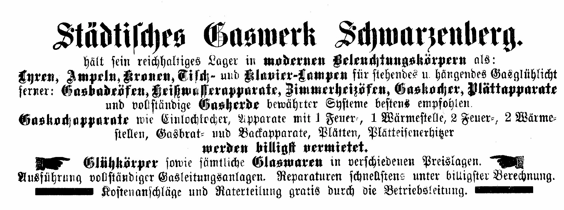 Inserat Städtisches Gaswerk Schwarzenberg |