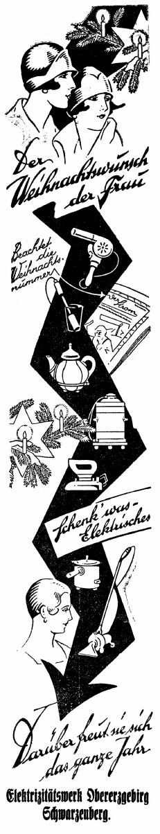 Inserat Elektrizitätswerk Obererzgebirg, Das Kraftwerk selbst stand auf der Flur zwischen Schwarzenberg und Neuwelt. Die Verwaltung hatte aber ihren Sitz in der Schwarzenberger Neustadt, Straße der Einheit 42. Heute ist in dem Gebäude ein Betriebsteil der Firma ENVIA Mitteldeutsche Energie AG hier ansässig. |