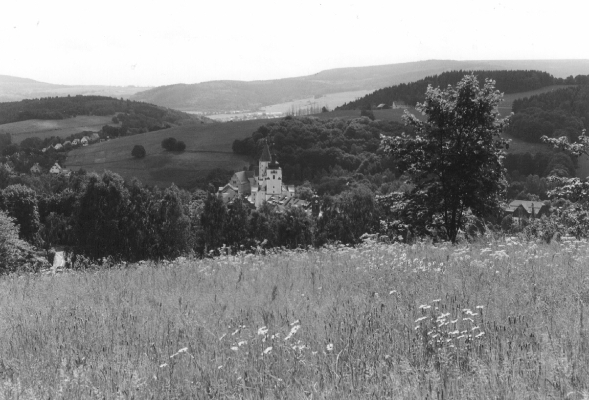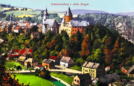 Blick vom Krummen Weg auf Schloß und Kirche von Schwarzenberg |