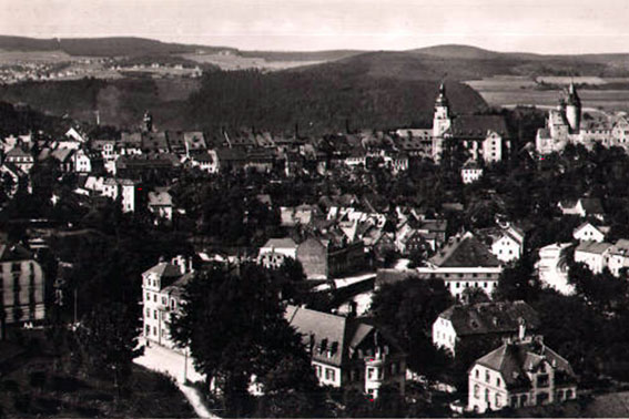Blick vom der ehemaligen Terrasse des Café Poetzsch auf die Altstadt und Vorstadt von Schwarzenberg |