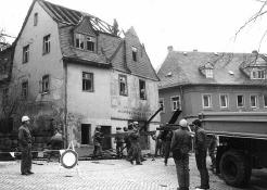 Stellen zum Schützenumzug am sogenannten Tor-Beck-Haus, heute Oberes Tor 1, im Ladengeschäft hatte sich das Textilgeschäft C. W. Baumgarten eingemietet. C. W. Baumgarten hatte seinen alten Laden 1900 abreisen lassen und an dessen Stelle ein modernes Kaufhaus errichtet, heute Bekleidungshaus Bruno Schöne, das er 1902 eröffnete. Deshalb hatte er sich in der Verkaufsstelle Oberes Tor 1 eingemietet. |
